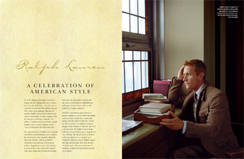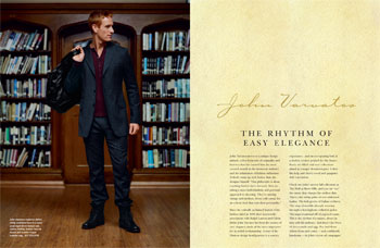 The edgier stance of John Varvatos goes back to back with Ralph Lauren's ivy-covered persona. These advertorials were standouts in The Mall at Short Hills's Fall fashion book.