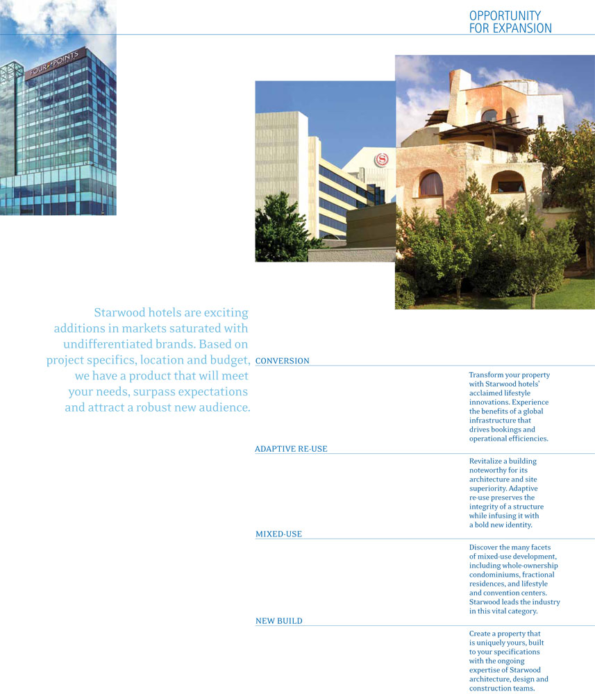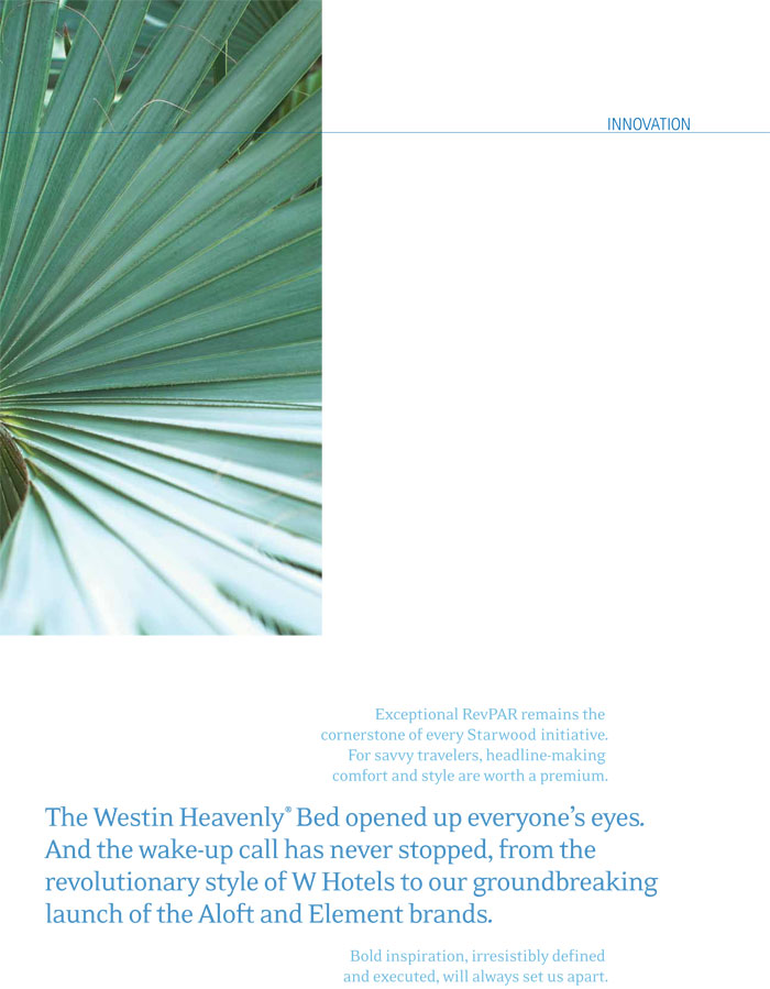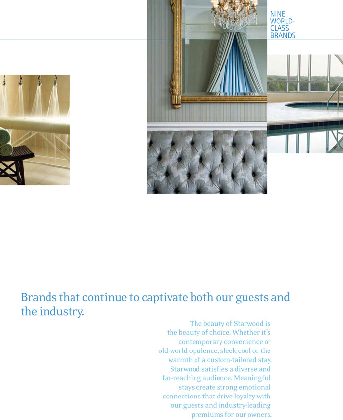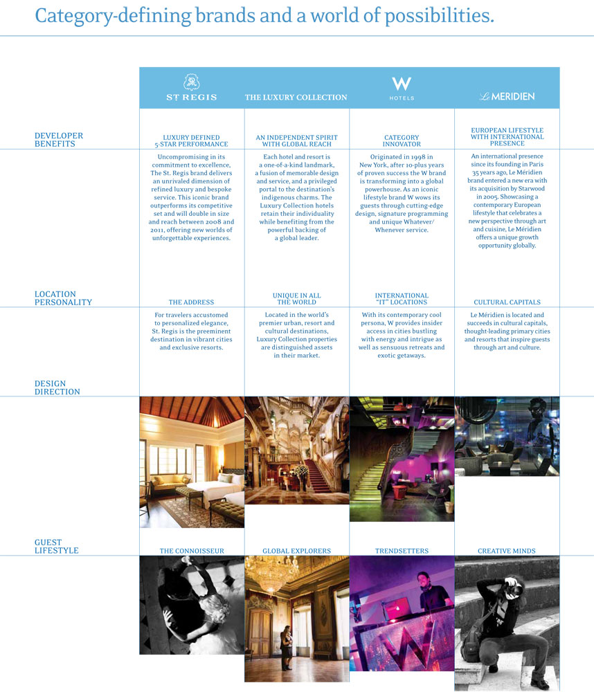 I've been shaping the evolution of every Starwood hotel brand for several years. This sleek performance overview is aimed at developers and investors, the lifeblood of hotel expansion.