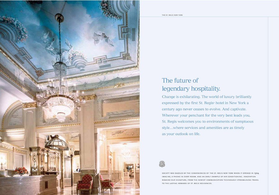 As the celebrated style of St. Regis expands worldwide, this 58-page brochure offers a detailed look at the future of legendary luxury.